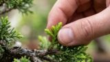 * 真柏・杜松: 真柏は輪郭からはみ出した葉を指でつまみ、杜松は芽吹きが旺盛なため小まめな芽摘みが欠かせません。