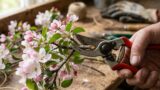 切る枝と残す枝は、花芽の有無で判断します。花芽は葉芽よりも大きく丸く膨らんでいるため、剪定時に確認できます。翌年も花を楽しむためには、この花芽を残します。