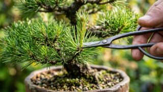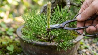 赤松や黒松の盆栽では、春に伸びた新芽を切り戻す「芽切り」という作業を行います。芽切りは、枝が伸びすぎるのを防ぎ、葉を短く仕立てるために行います。この作業によって二番芽を芽吹かせ、芽数を増やし、葉の長さを揃えることで、引き締まった樹形を維持し...
